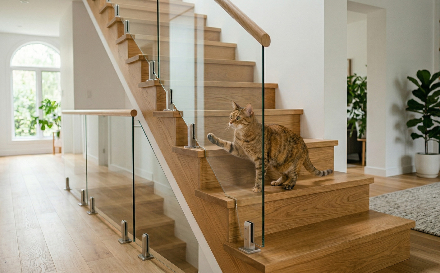 • Balustrady wewnętrzne (schody, antresole): Wewnątrz pomieszczeń głównym wrogiem są odciski dłoni i kurz domowy. Choć deszcz tu nie pada, powłoka hydrofobowa (a często w tym pakiecie także oleofobowa) sprawia, że tłuste ślady palców nie „wgryzają” się w strukturę szkła. Jeśli masz w domu dzieci lub zwierzęta, powłoka zaoszczędzi Ci codziennego polerowania tafli, by zachować efekt lekkości.